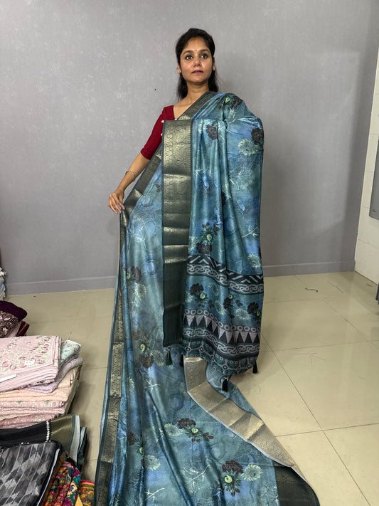 SEA GREEN COLOR JAAM COTTON WITH HAND RESHAM WORK LINEN DUPATTA ZARI BORDER (SUIT1013)