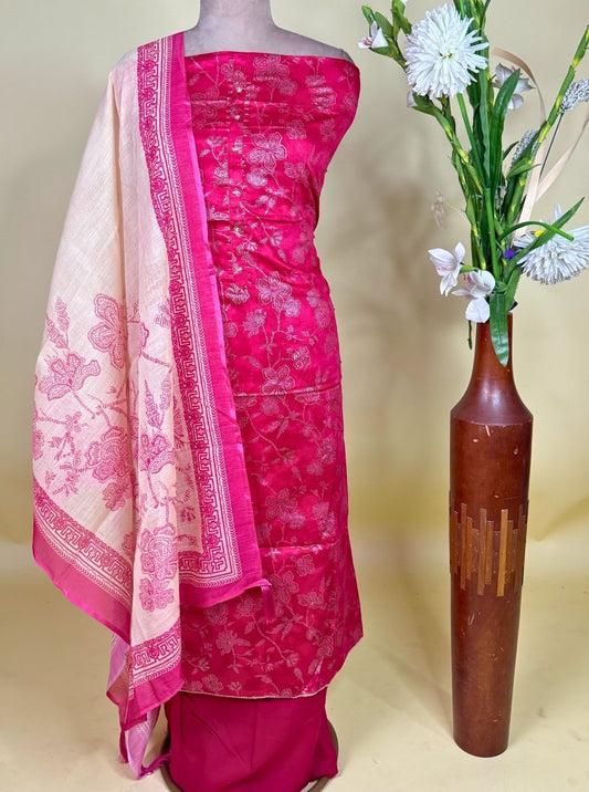 PURE LILEN SUIT & SENTOON BOTTOM RAW SILK EMBEROIDERY DUPATTA (SUIT1016)