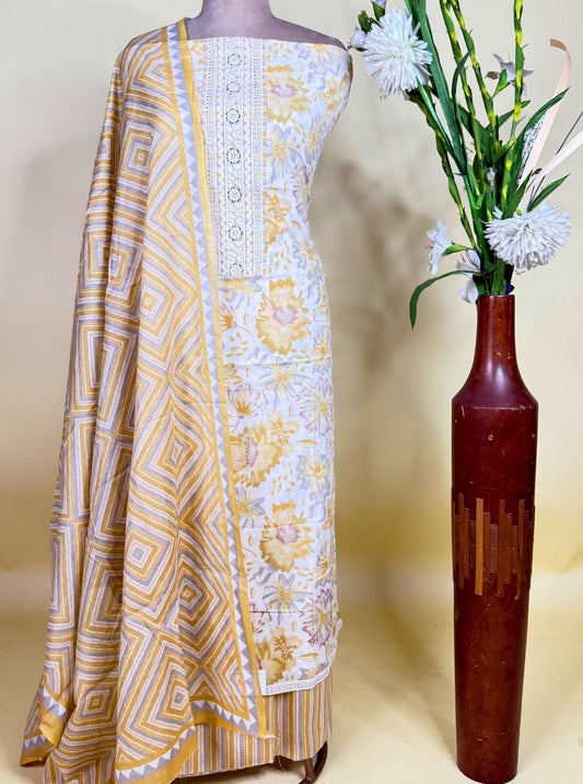 ORGANIC COTTON WITH LACE NECKLINE AND MUL COTTON PRINTED DUPATTA (SUIT1022)