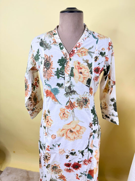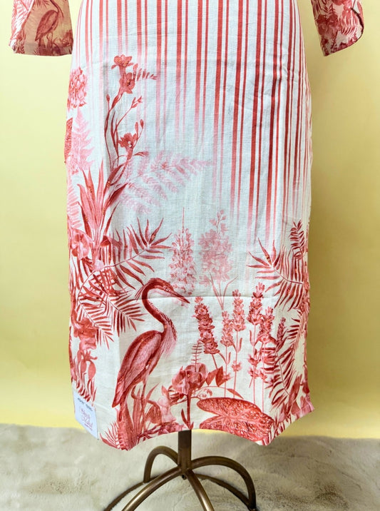 IVORY RUST ORANGE SWAN PRINT KURTI WITH SEQUIN & THREAD WORK (KUR1002)