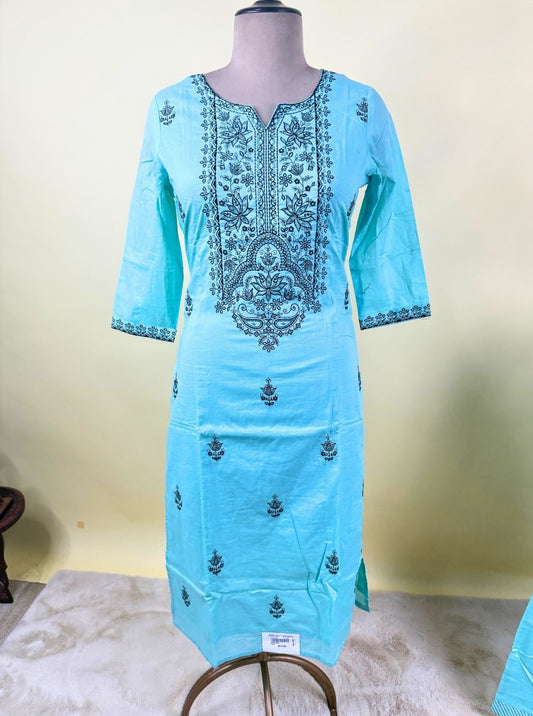 SEA GREEN MUL KURTI WITH CUTWORK DUPATTA (KUR1001)