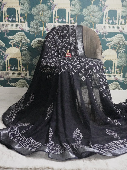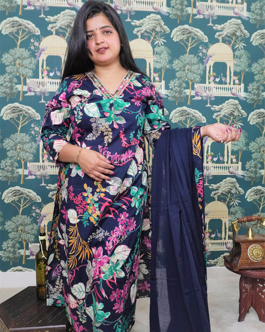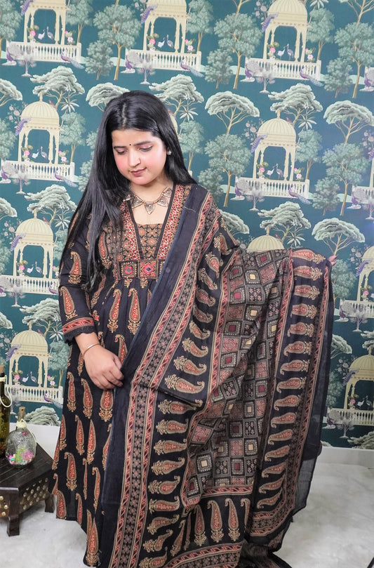 AZRAK PRINT KATHEWADI MIRROR WORK COTTON ANARKALI SUIT (SM1019)
