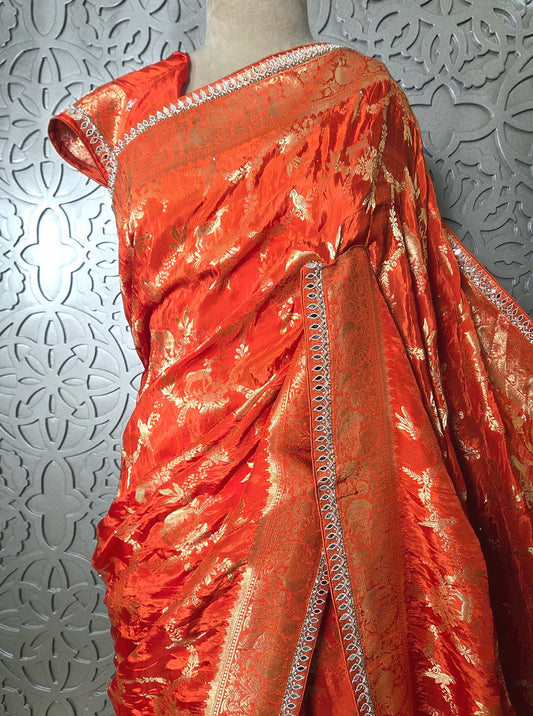 FABRIC CRAP WITH WEAVING BORDER PARSHI RESHAM EMBROIDARY JAAL (SAREE1125)