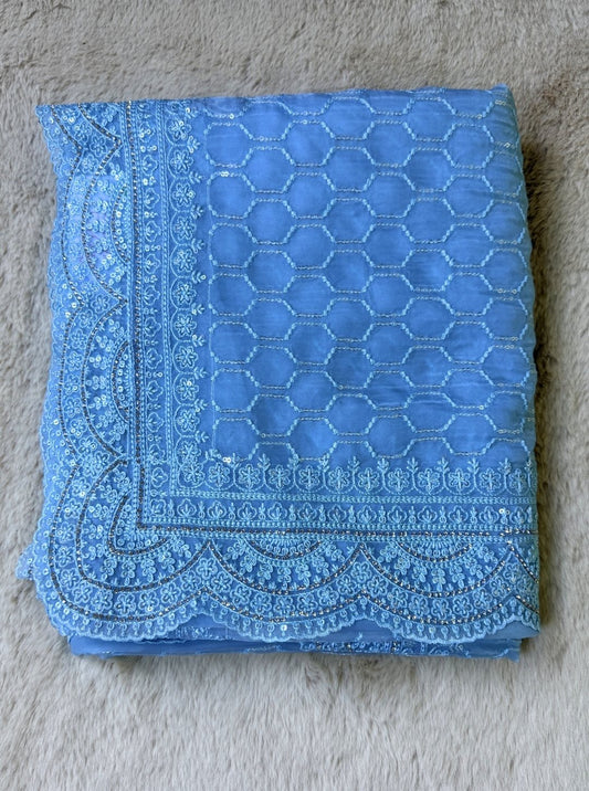 SKY BLUE ORGANZA SAREE WITH SEQUENCE WORK (SM1049)