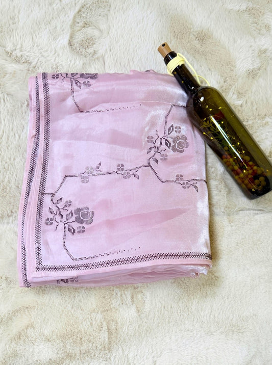 TISSUE ORGANZA SILK WITH SEROSKEY WORK LIGHT PINK SAREE (SM1048)