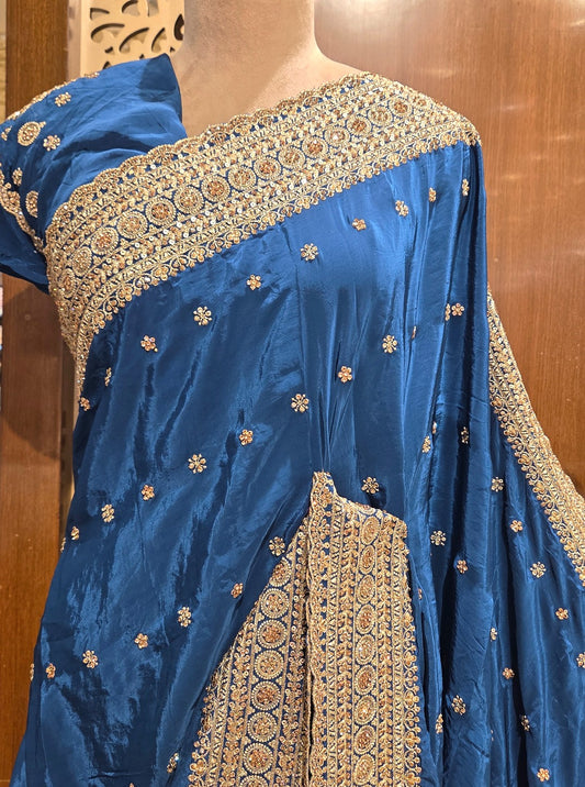 CREPE SILK WITH DABKA WORK & MIRROR WORK (SAREE1078)