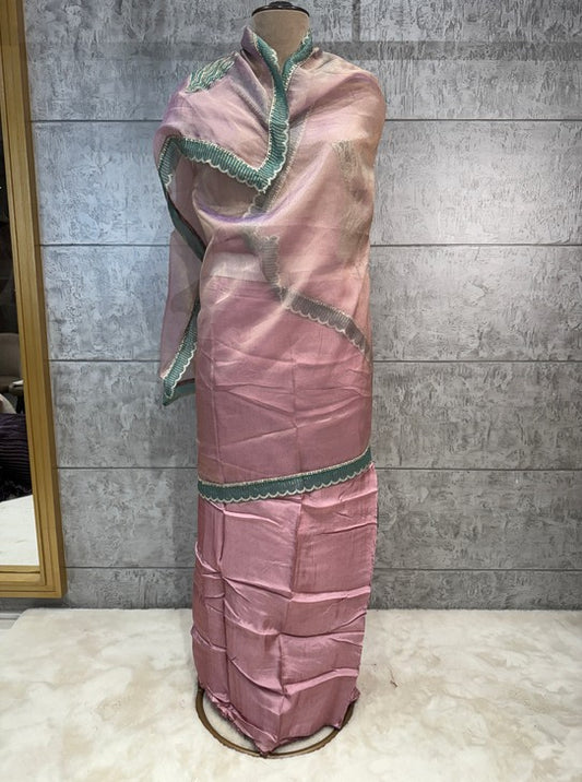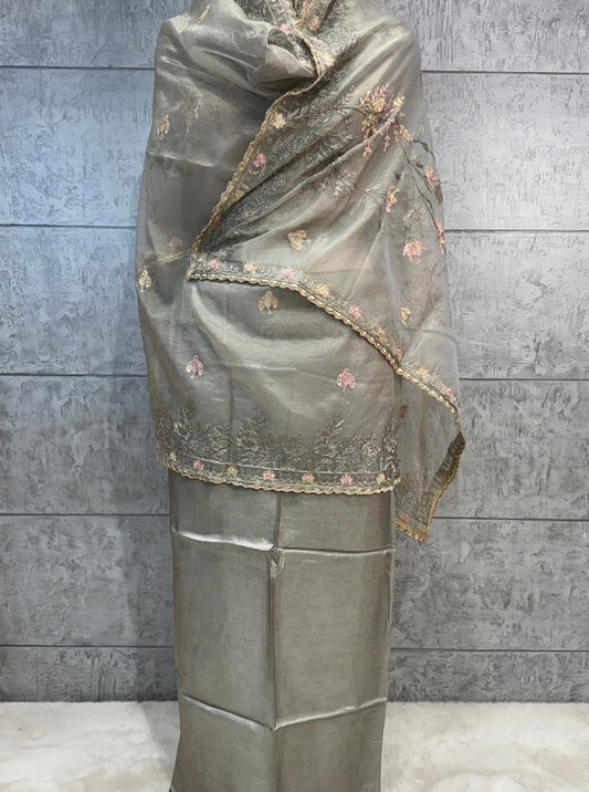 FABRIC CRAP WITH WEAVING BORDER PARSHI RESHAM EMBROIDARY JAAL (SAREE1125)