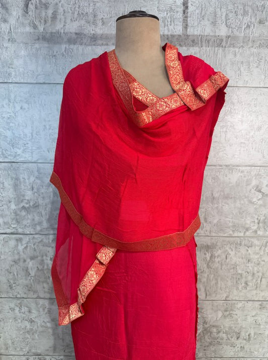 CHANDERI FABRIC SUIT WITH NECKLINE WORK DOLA DUPTTA JUTTI AND POTLI (SUIT1122)