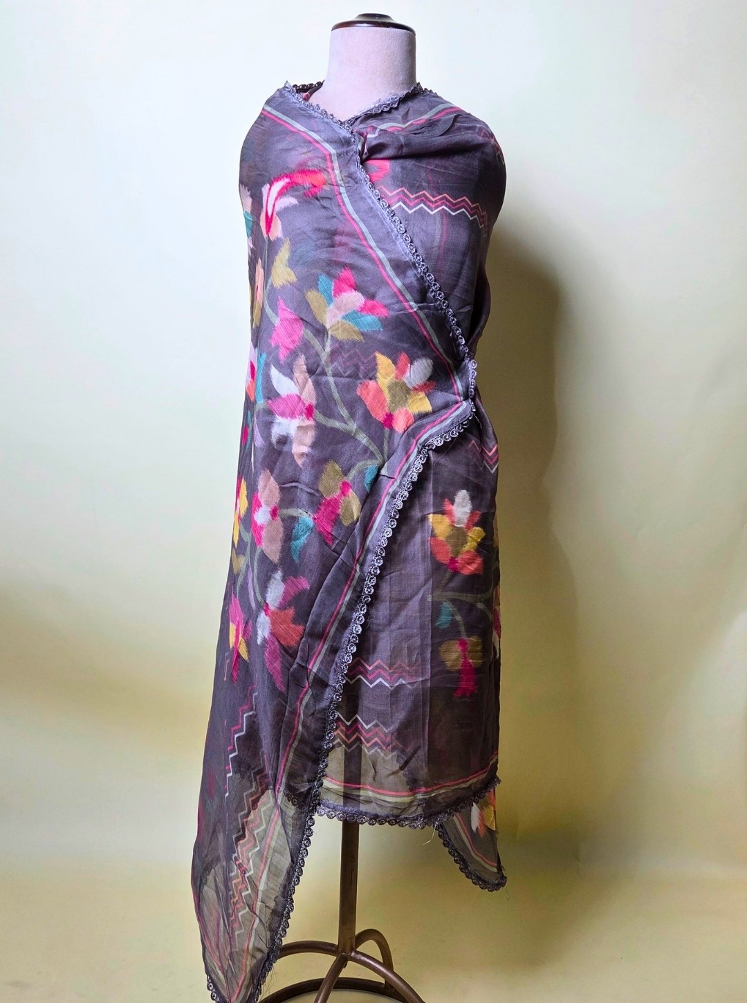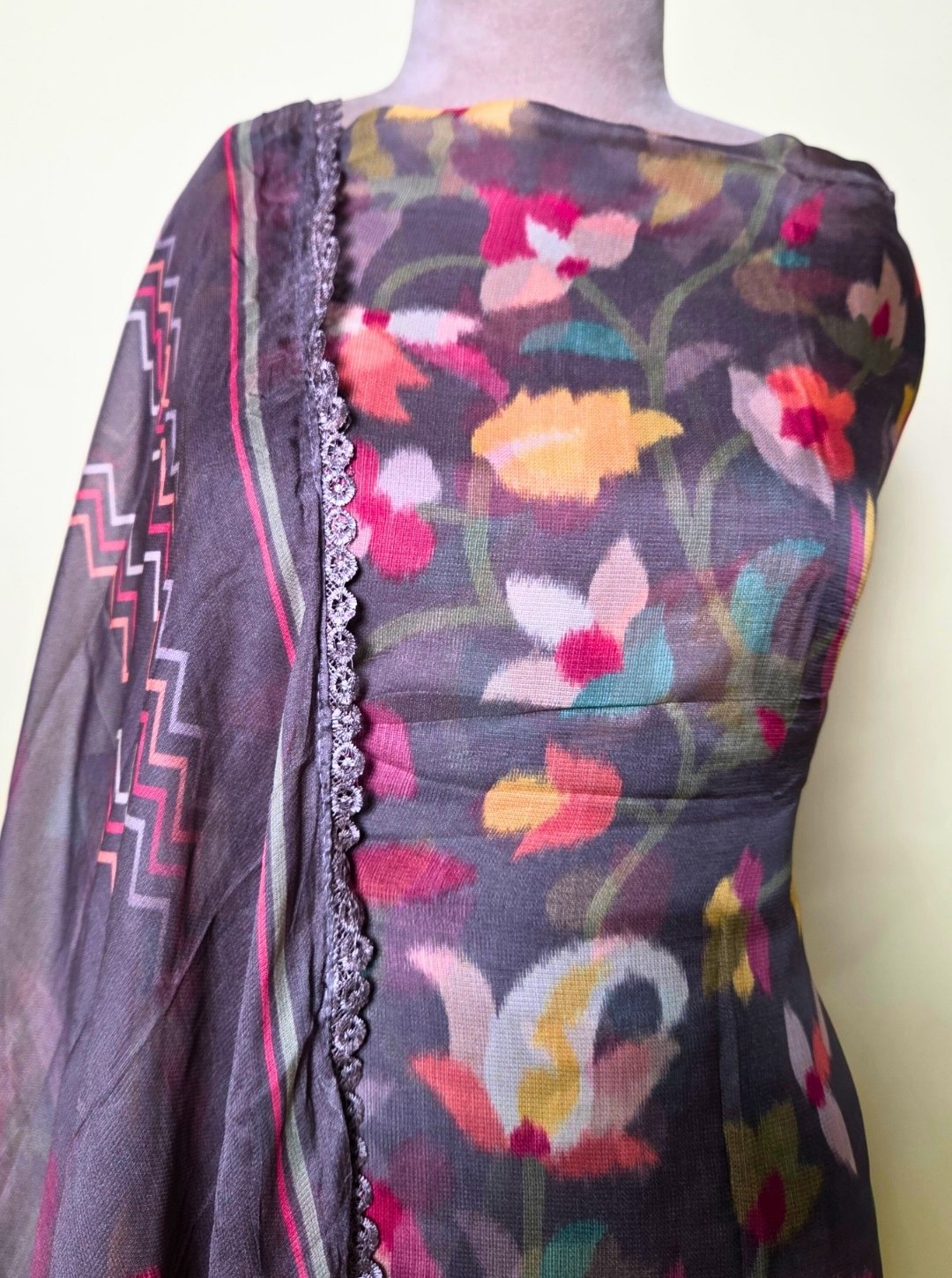 - Dupatta: Lightweight with lace border and zigzag design