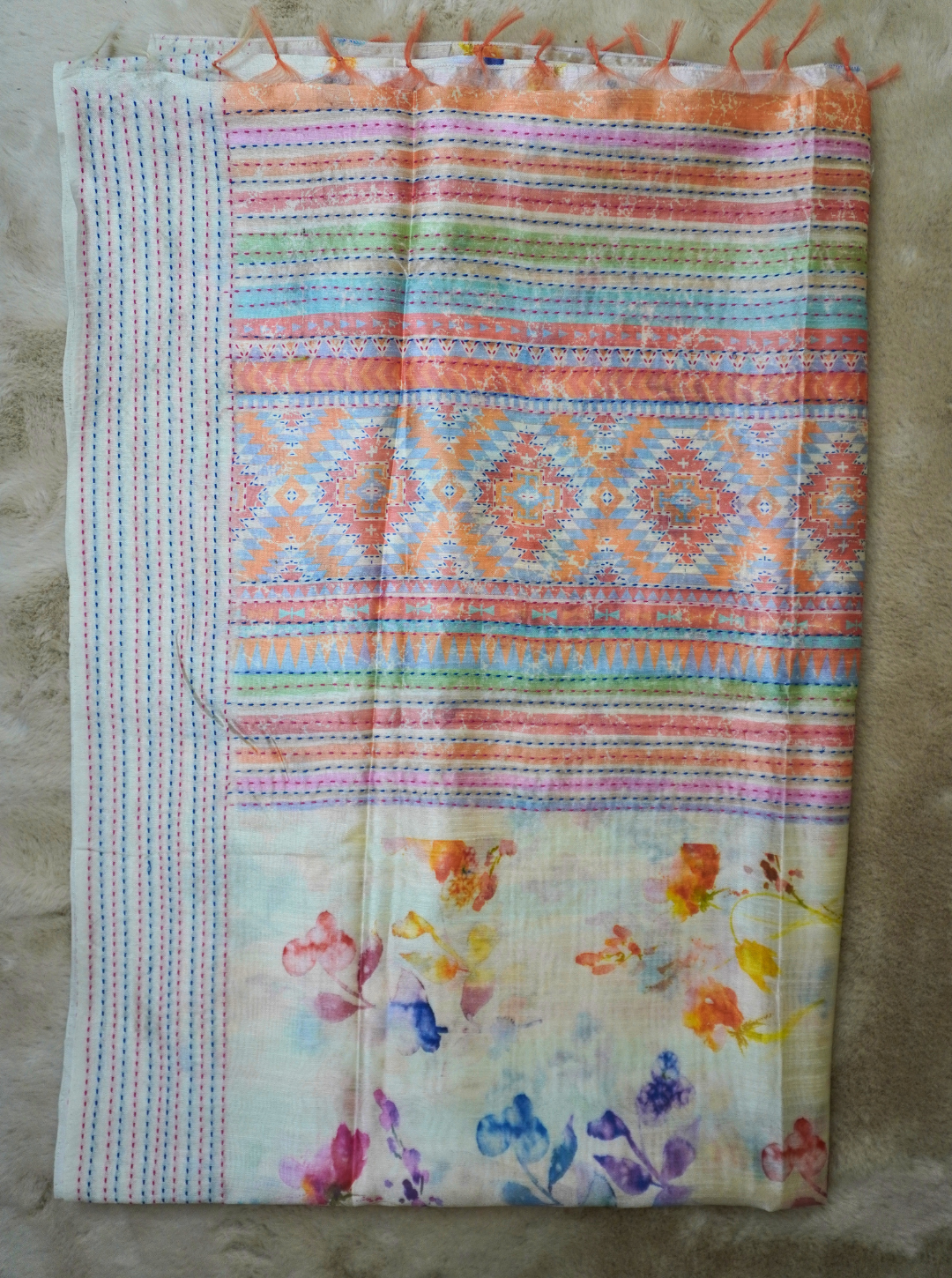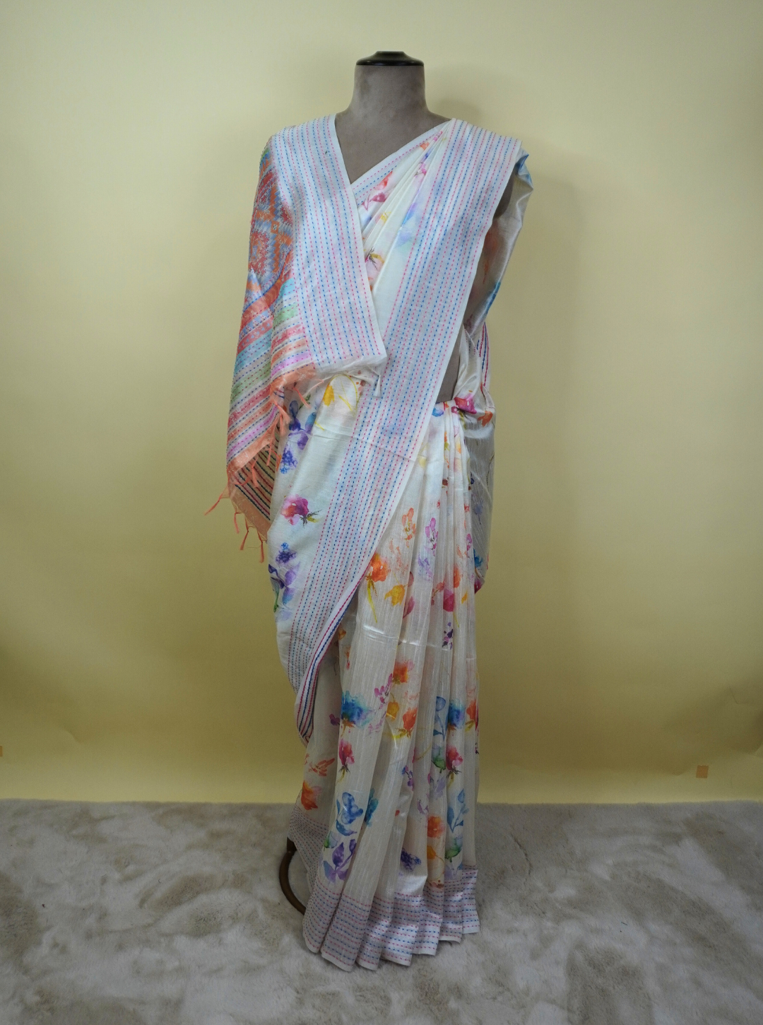 CHANDELI HAND PRINT KANTHA BORDER SAREE