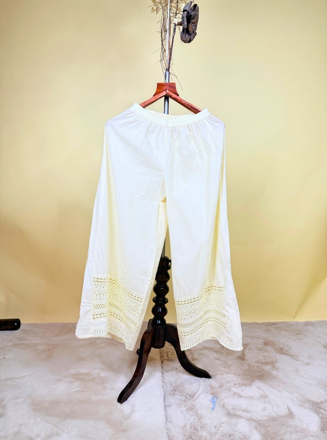 - Bottom Fabric: Cotton pant with lace detailing