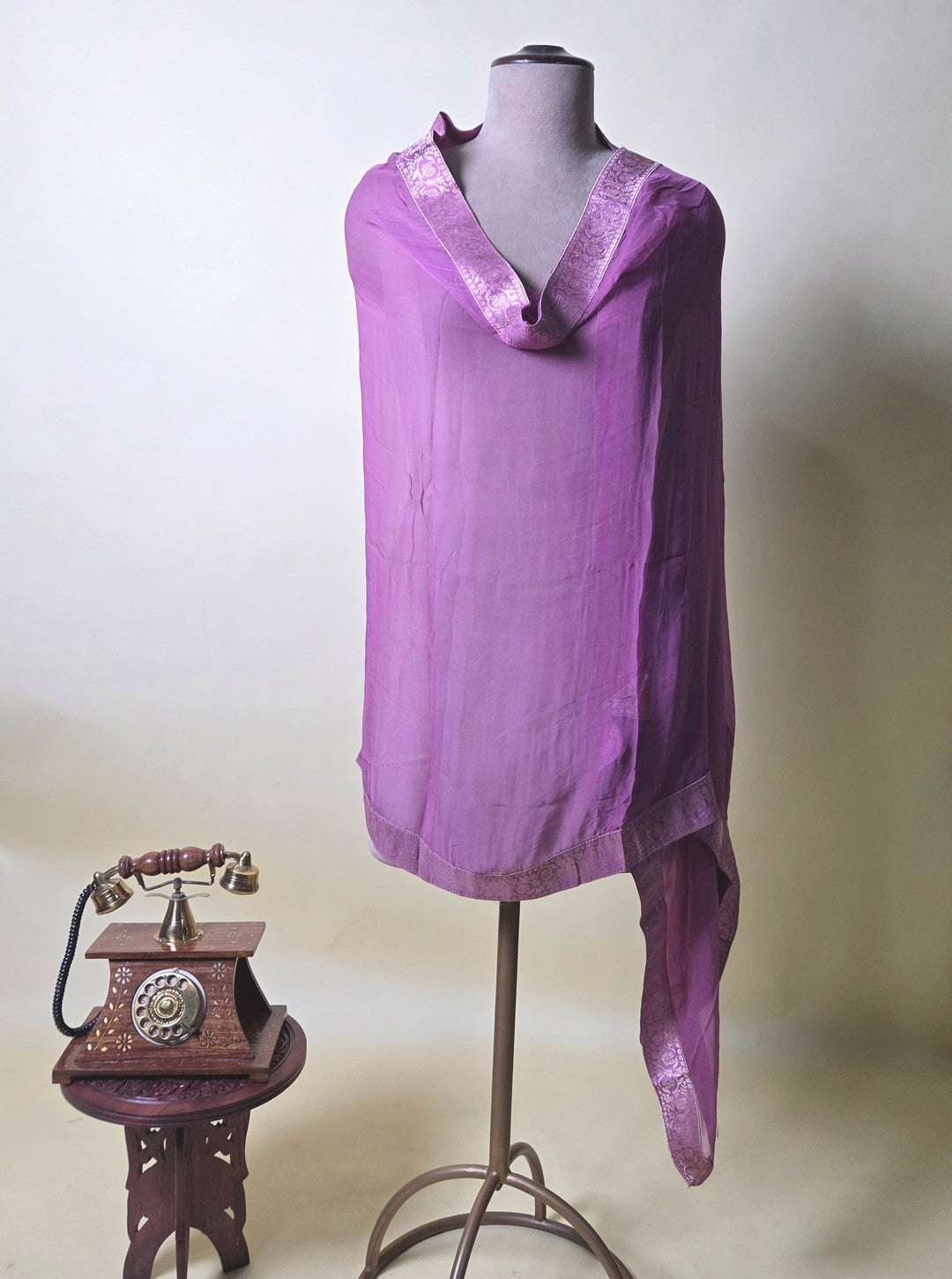 - Dupatta: Sheer and graceful with a woven border in matching lavender