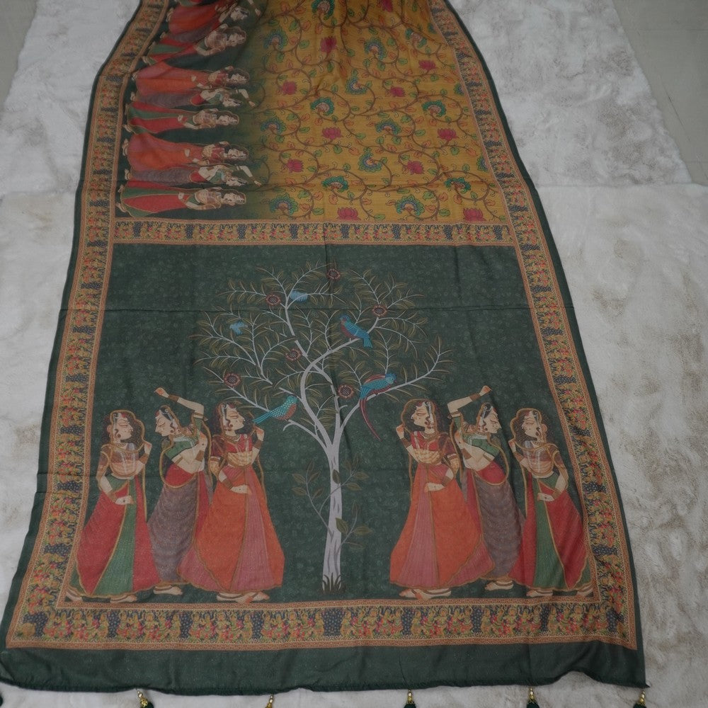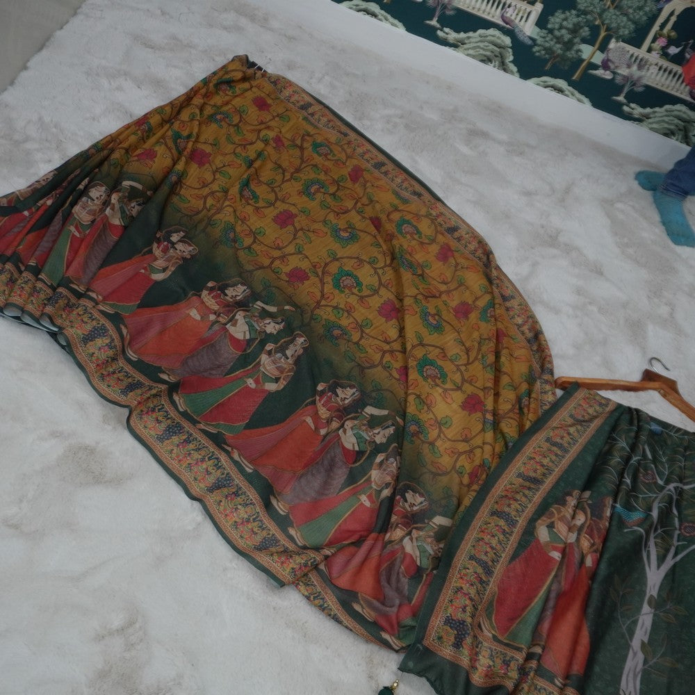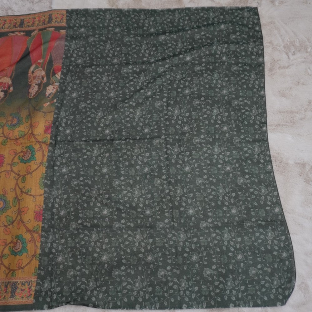 Expertly crafted with traditional Kalamkari printing, our GEORGETT PRINT KALAMKARI from SHEESH MAHAL is a stunning addition to any wardrobe. Experience the timeless elegance of this unique fabric and elevate your style with its intricate designs.