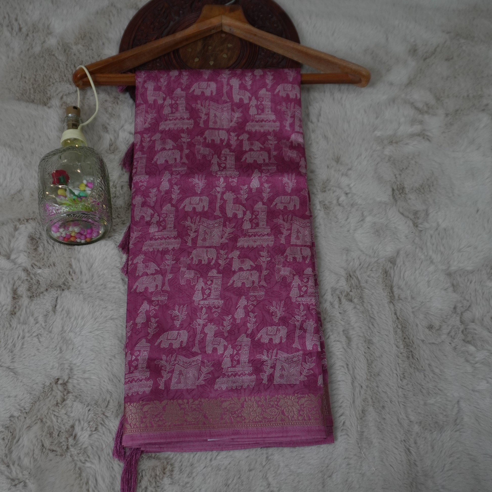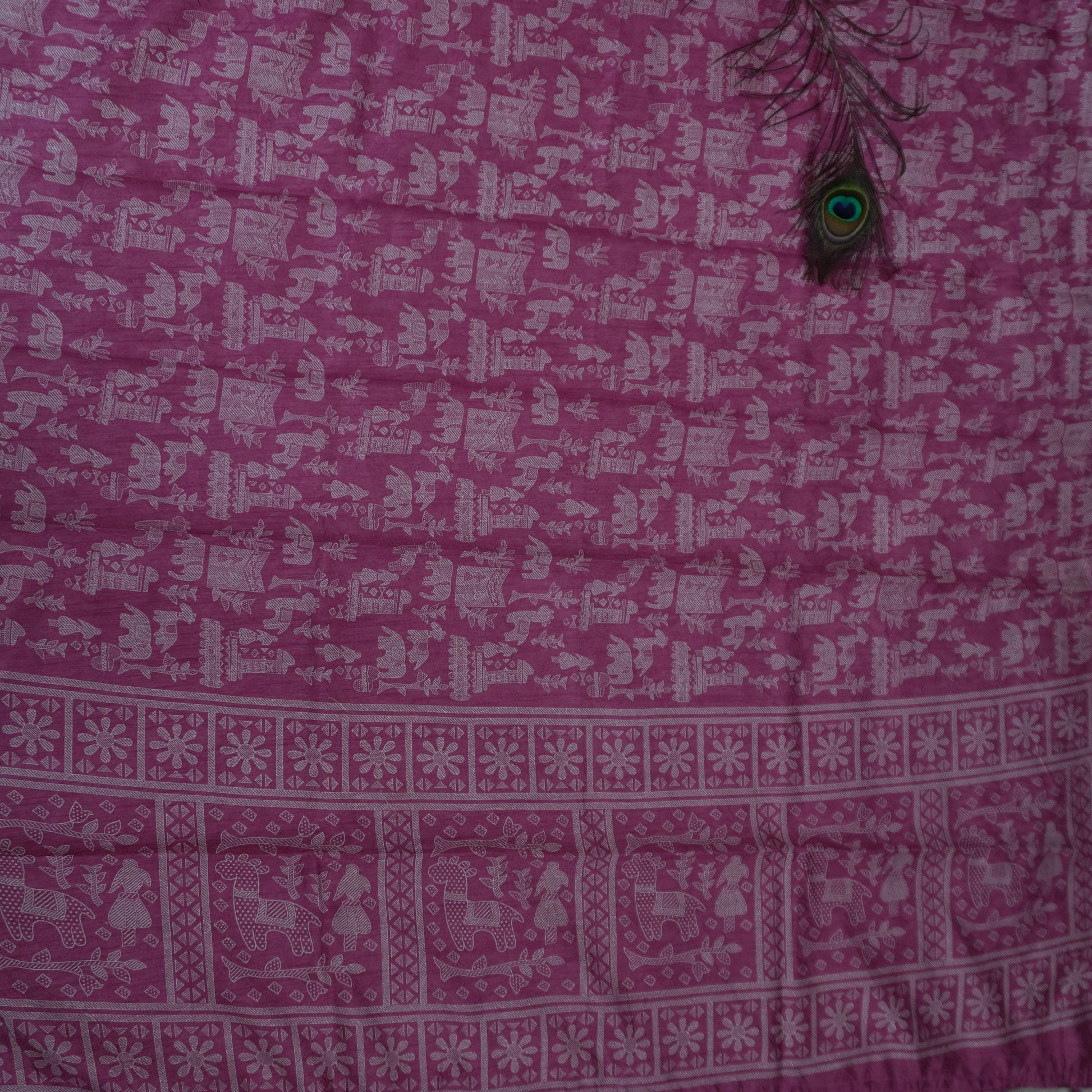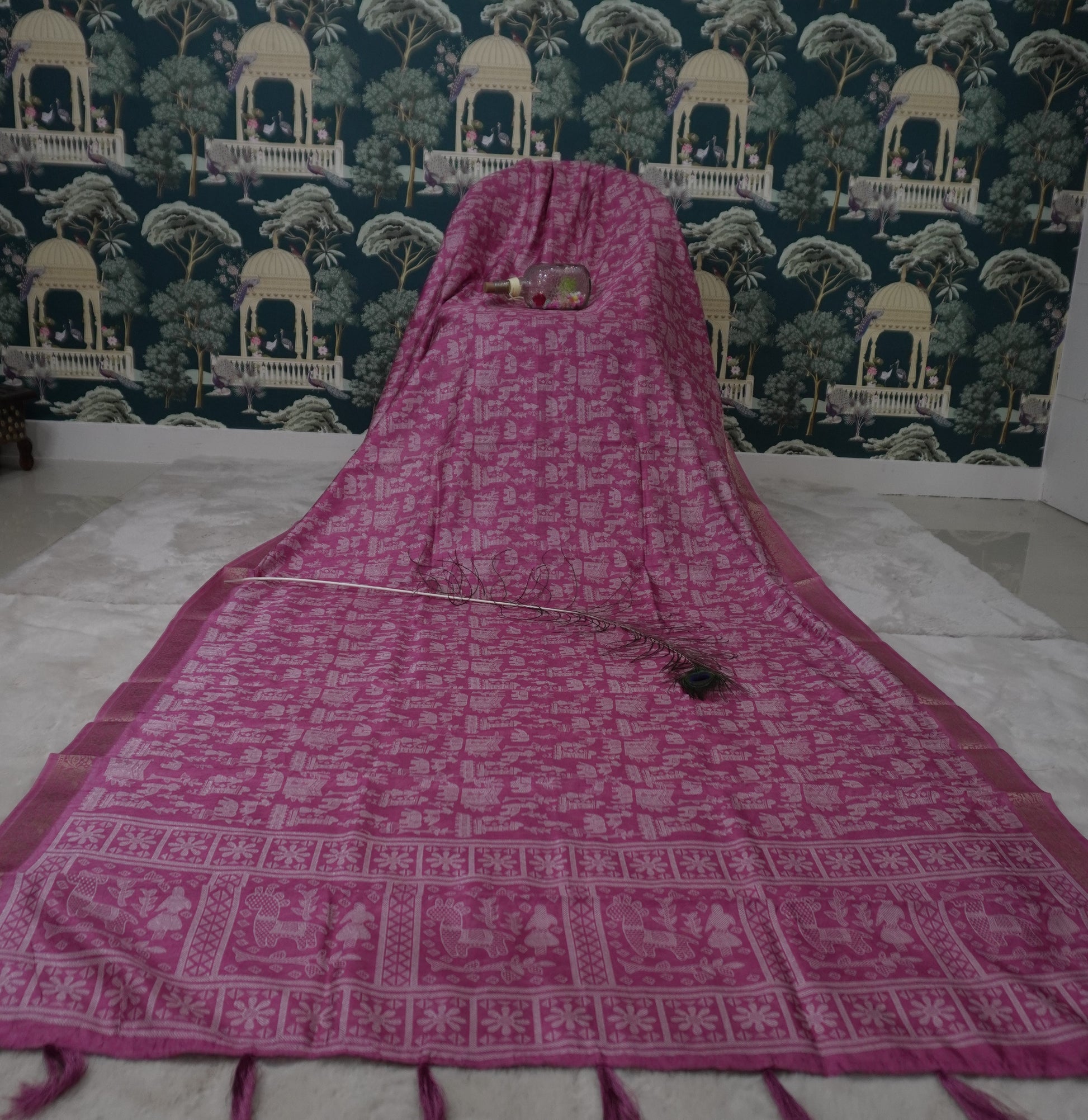 This elegant saree is made from high-quality cotton silk and features traditional Madhubani print. Perfect for formal occasions or everyday wear, this saree showcases the rich culture and artistry of Madhubani, adding a touch of sophistication to any outfit.