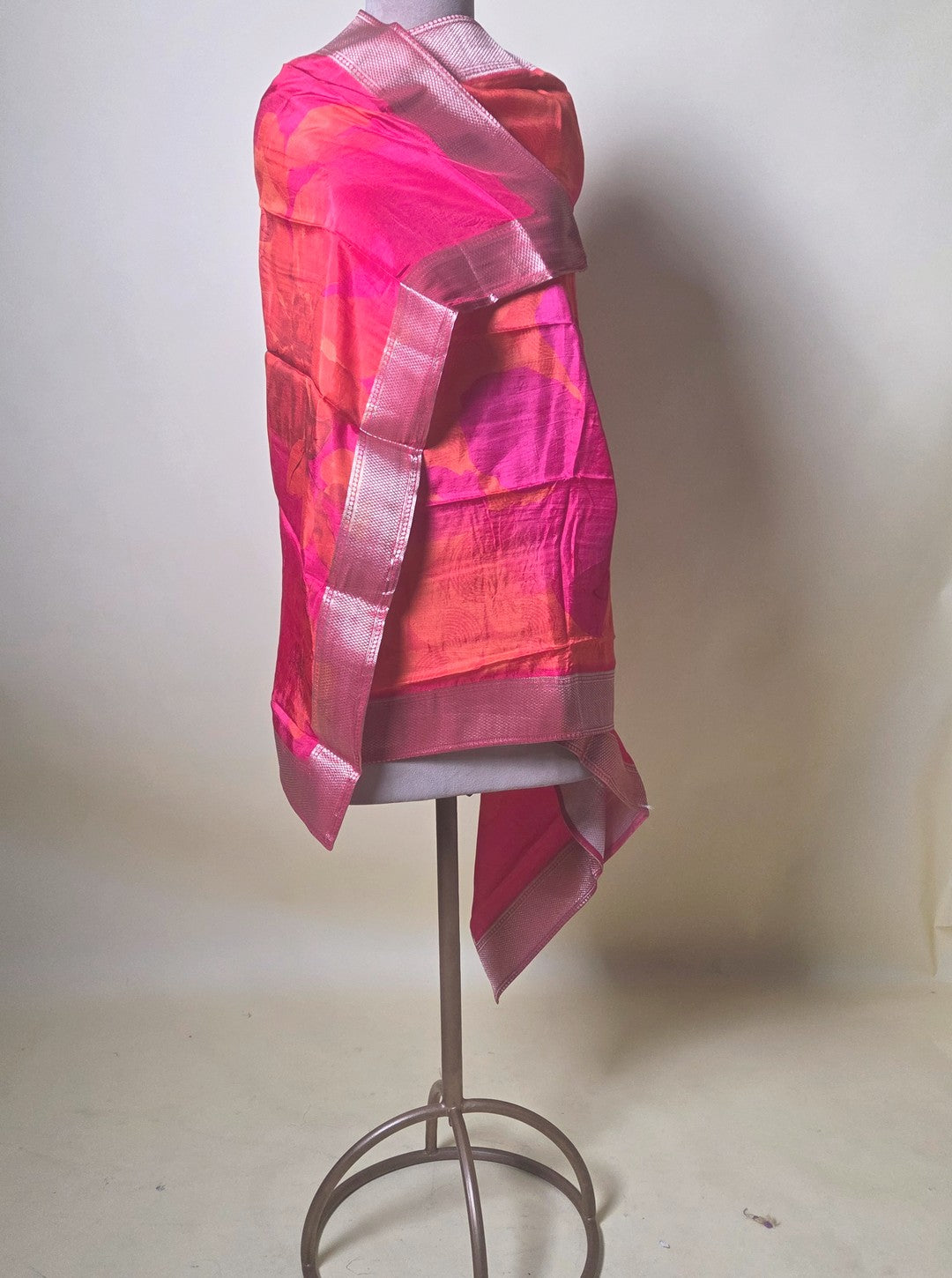 - Color: Fuchsia Pink with hints of Orange & Gold