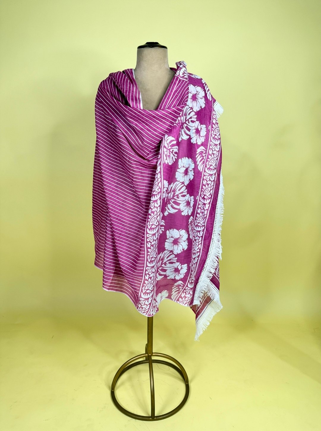 - Coordinated striped bottom for a chic and balanced contrast.