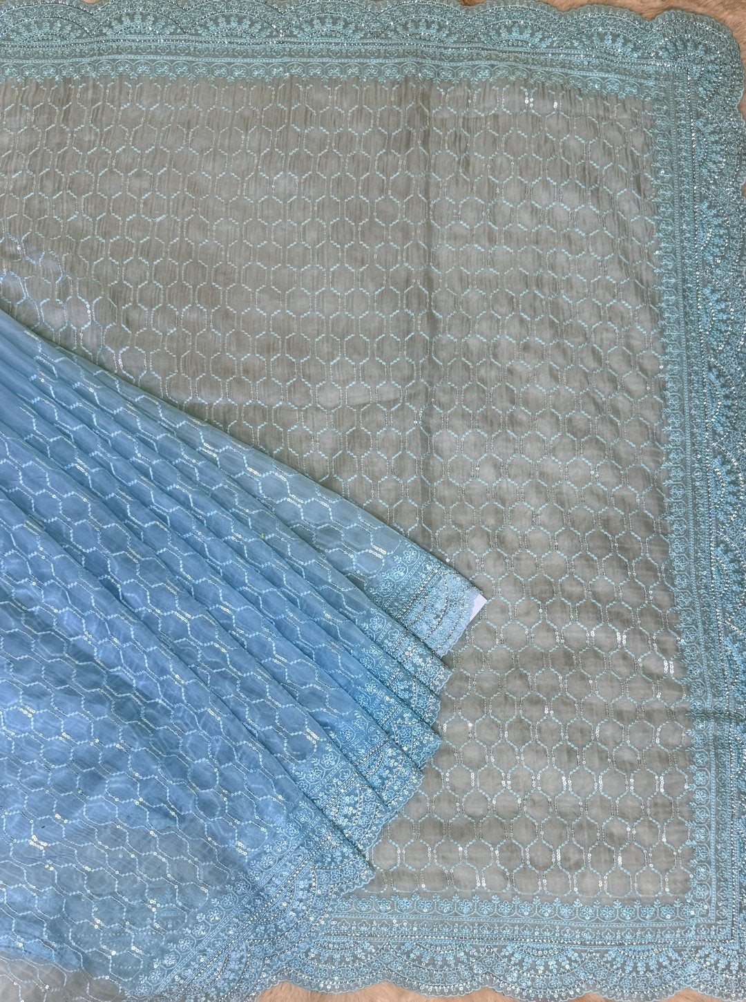 SKY BLUE ORGANZA SAREE WITH SEQUENCE WORK (SM1049)