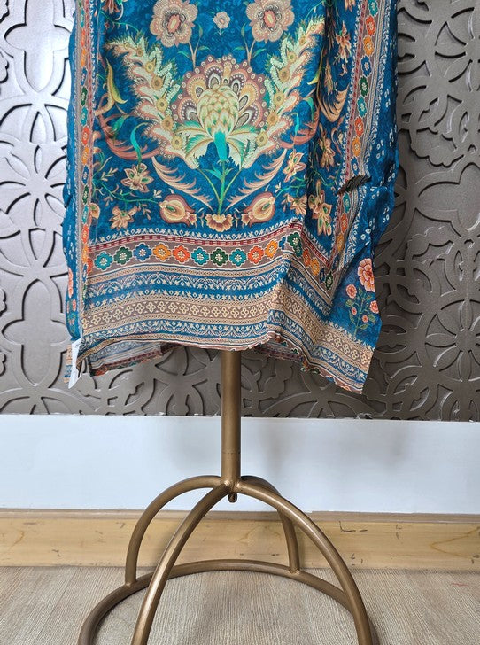 TISSUE FABRIC THREE PIECE SET WITH V NECK EMBROIDRY (KURTI1098)